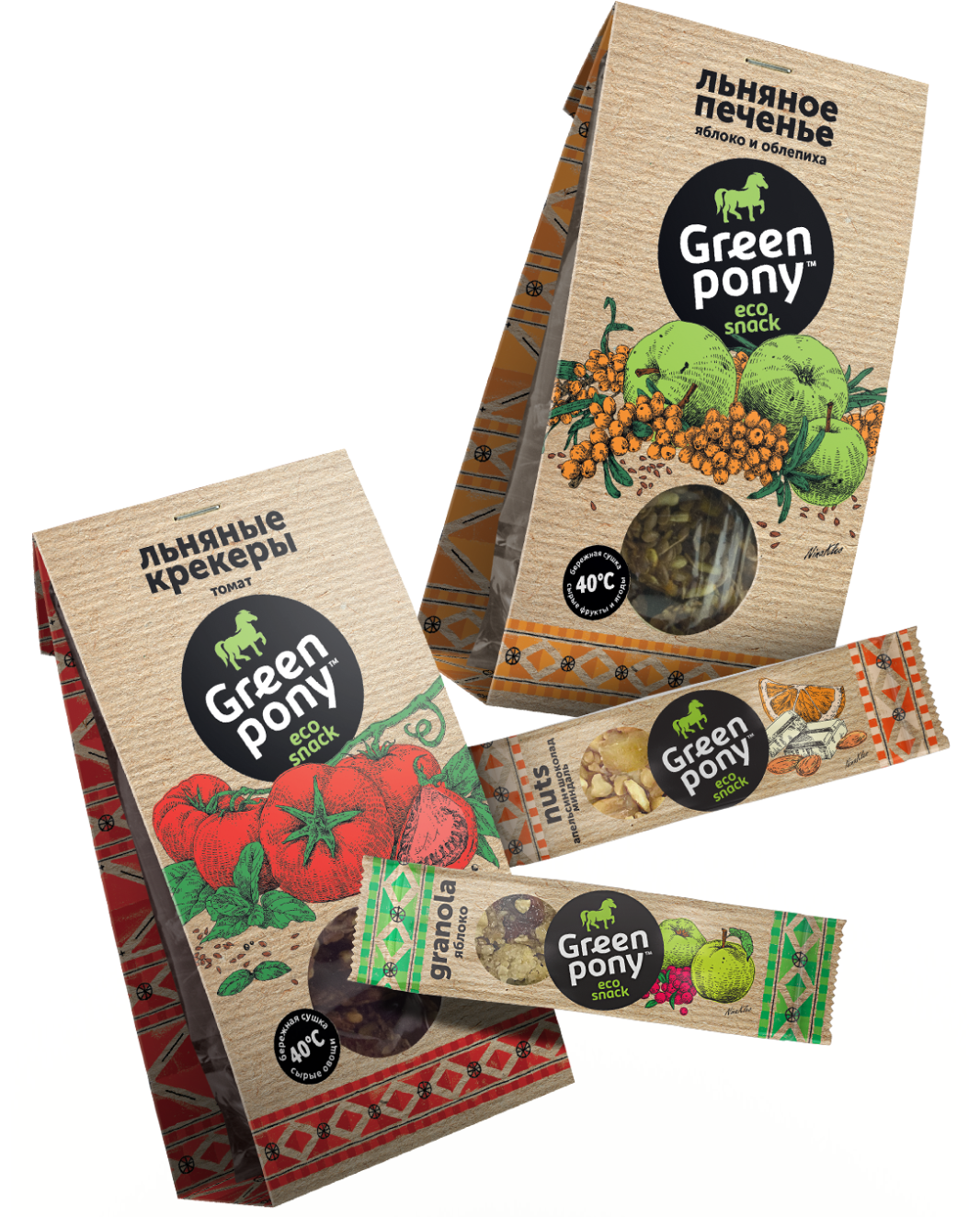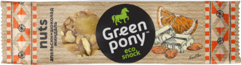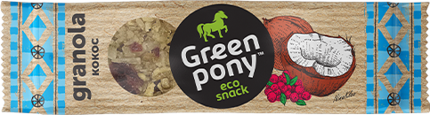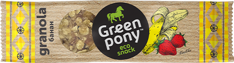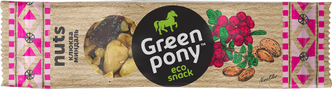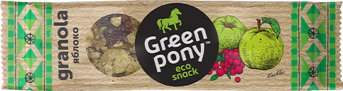 Разработка торговой марки и упаковки. GREEN PONY — линейка натуральных эко снеков.